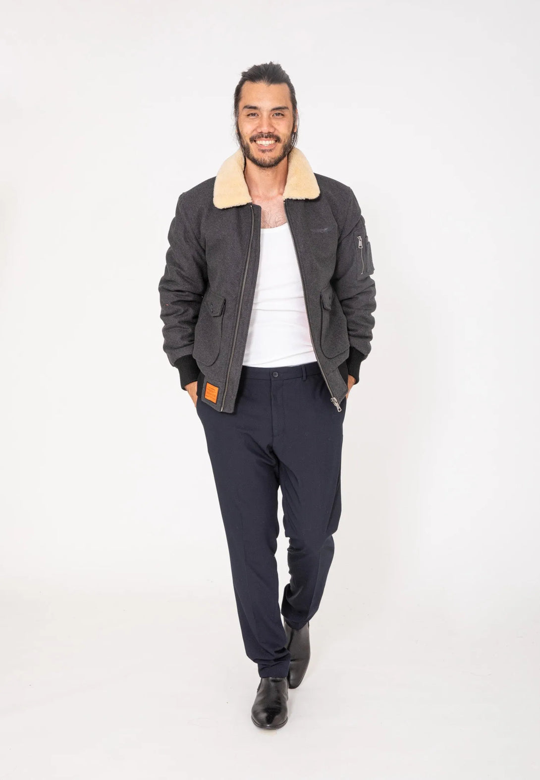 Pour un look intemporel et élégant, on mise sur le blouson aviateur en drap de laine. Sa coupe droite et ses bords-côtes aux poignets et à la taille en font une pièce flatteuse et agréable à porter. C’est un incontournable de l’hiver.