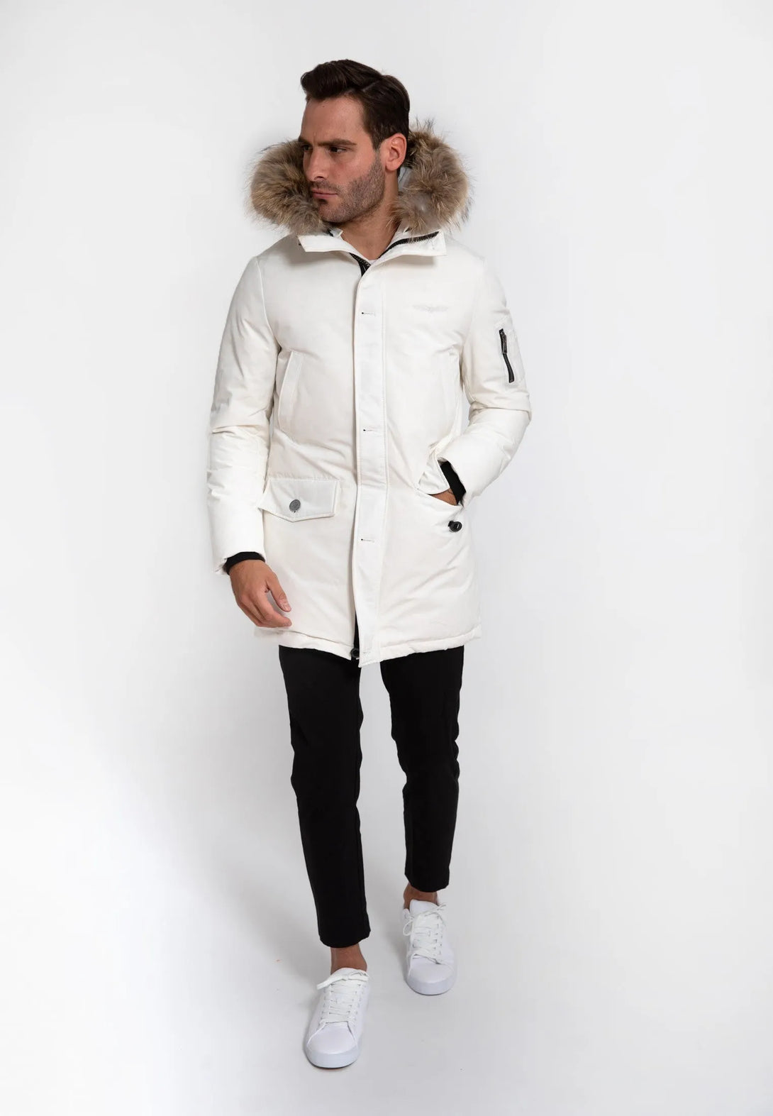 Cette parka au rembourrage duvet mélangé est munie d'une grande capuche pour vous tenir chaud en toutes circonstances. Fourrure véritable 100% racoon.